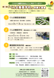 JA赤城たちばなは新規就農者、定年退職者や帰農者など、就農希望者の皆さんの農業を応援するとともに、組合員の農業知識や経営の向上を目的に就農支援講座を開講します。